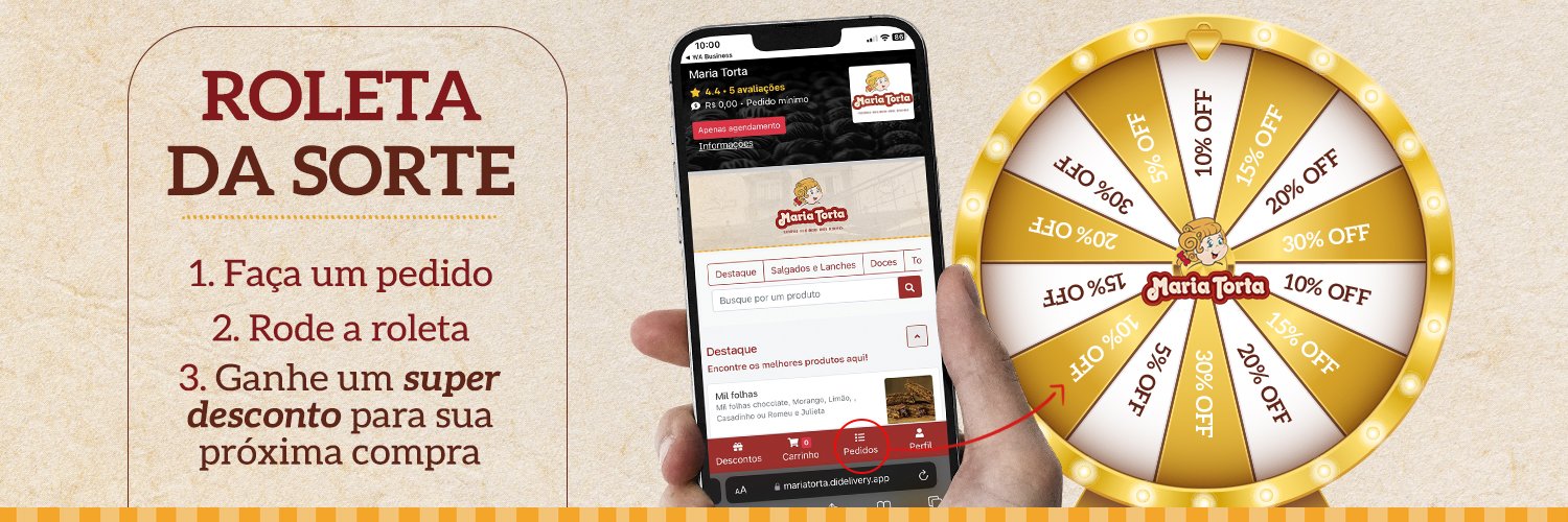 Faça o seu pedido acima de R$ 120,00 e gire a roleta para ganhar prêmios